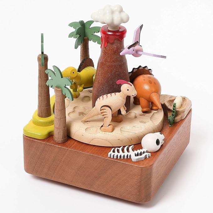 Step back in time with this captivating dinosaur-themed wooden music box, where prehistoric wonders come to life to the tune of "Rock of Ages."