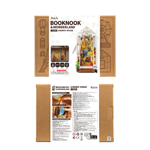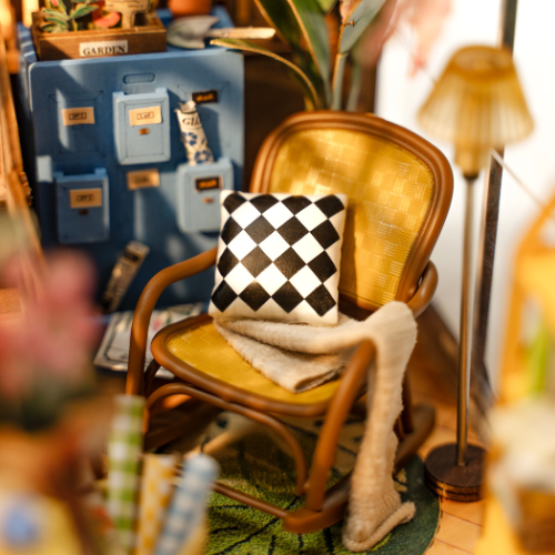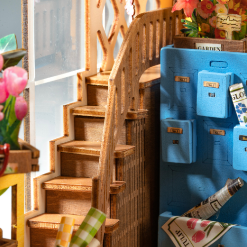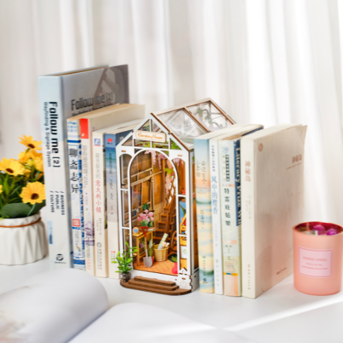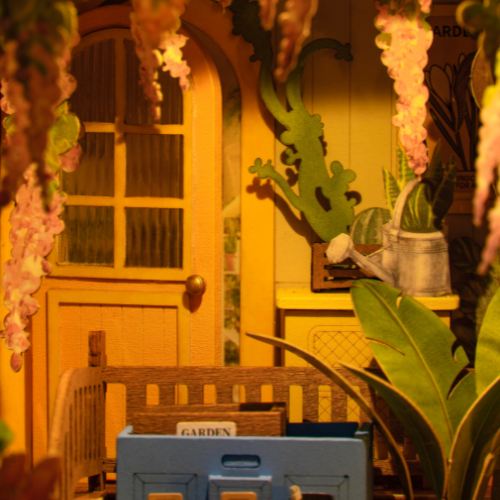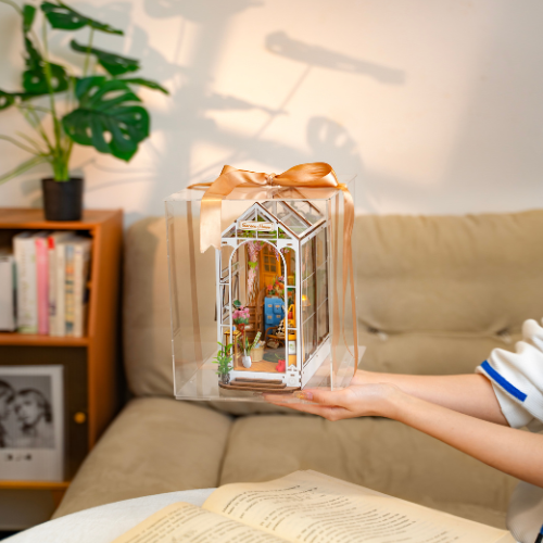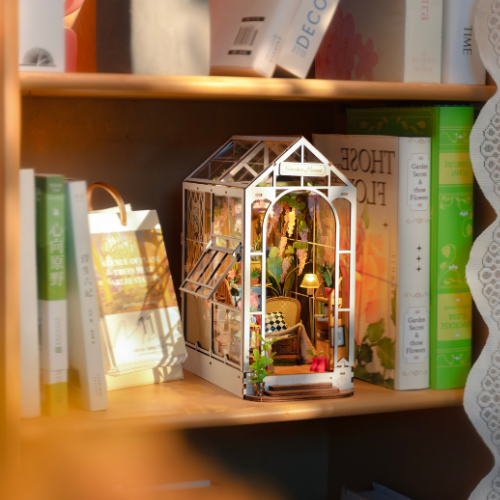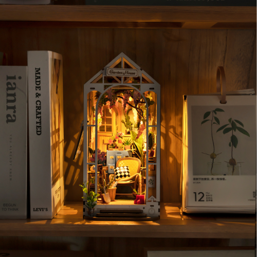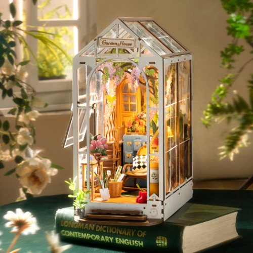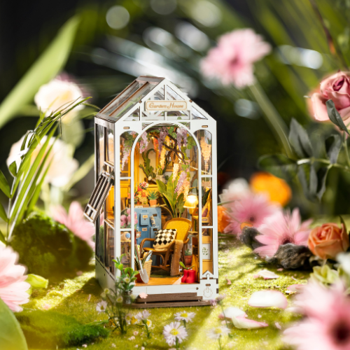 Assemble 176 wooden pieces to create a charming greenhouse scene filled with tiny plants and furniture. A perfect addition to bookshelves or desks.
