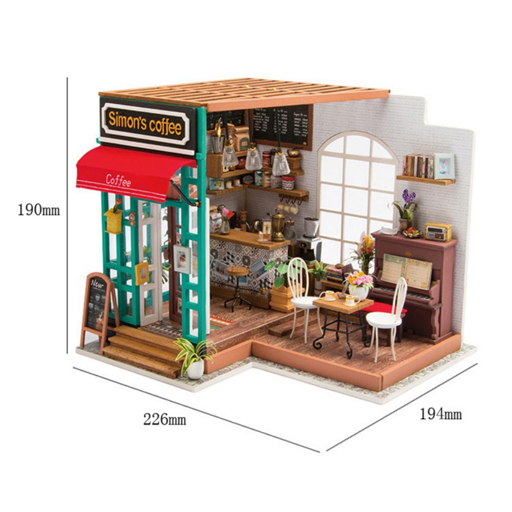 Assemble 203 wooden pieces to create a charming coffee shop with warm lighting and realistic details. A perfect project for coffee lovers, bookworms, and decor enthusiasts.
